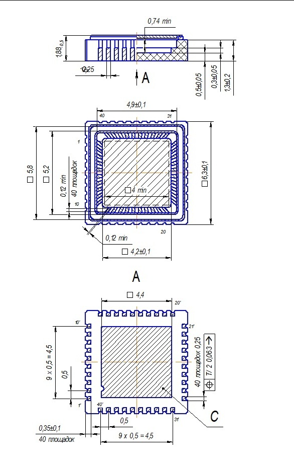 Конструктивное исполнение: металлокерамический корпус QLCC 40/40-2 безвыводной.